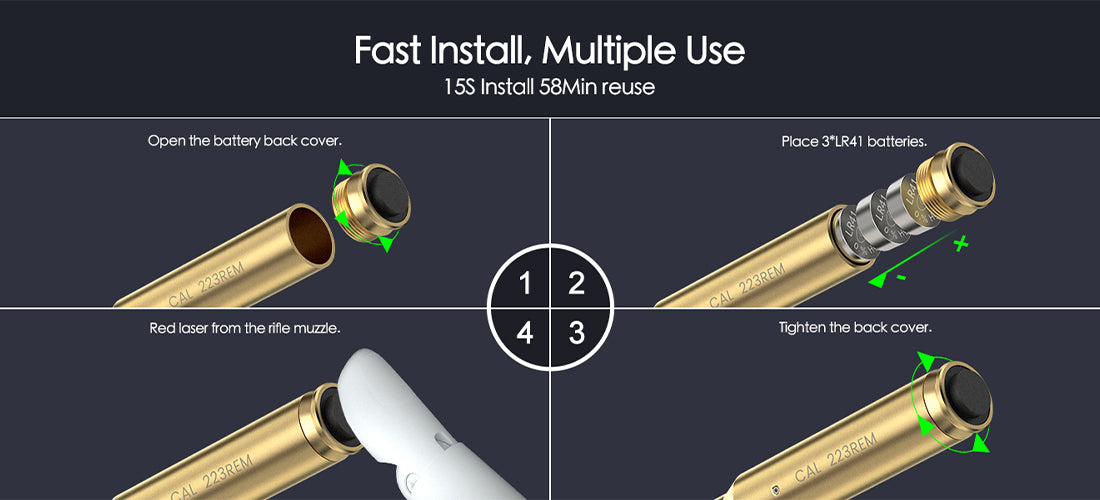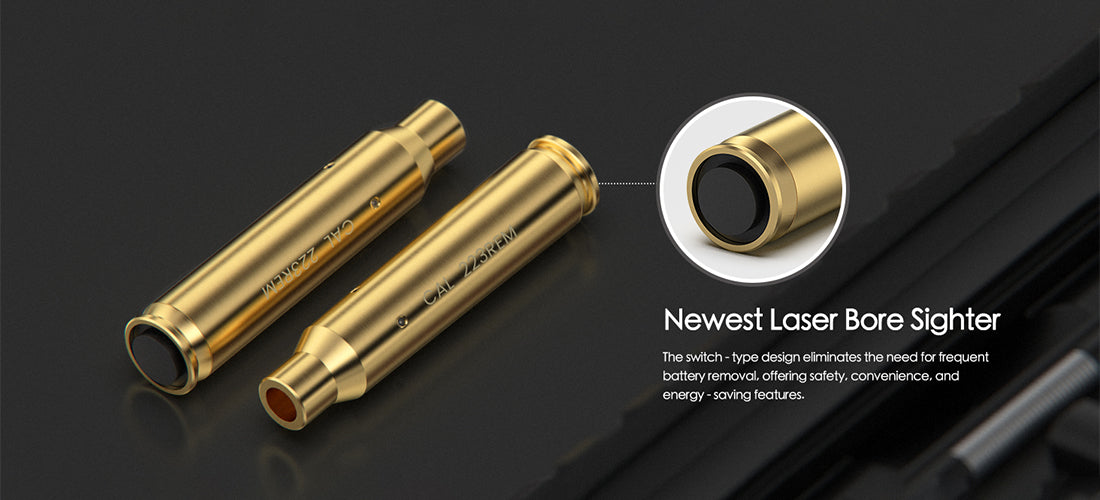• Creative Design:Feyachi 223 mm bore sight laser for rifles features a unique button switch design technology on the market. Pressing the tail button switch activates the bore laser, allowing for multiple uses without disassembly, and solving the problem of battery depletion