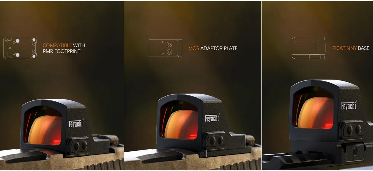 • RMR Footprint: Using the mainstream RMR footprint, it is also equipped with a MOS adapter plate and Picatinny base.Compatible with as many models of pistols, rifles, etc. as possible to meet different equipment and use needs