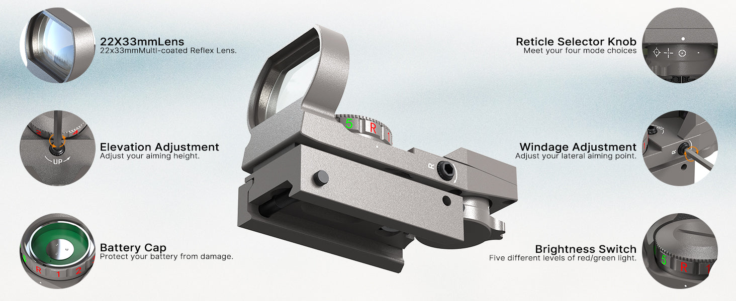 Feyachi RS-39 Reflex Sight - Réticule réglable Rouge/Vert