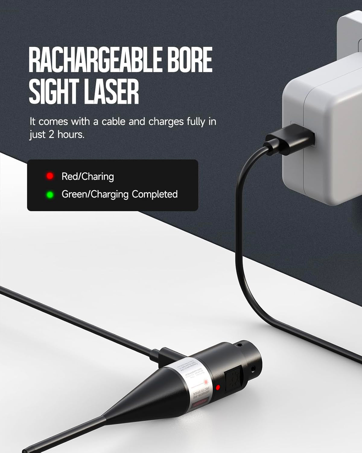 Feyachi Rechargeable Laser Bore Sight Kit with 64 Adapters fit 0.17 to 12 GA Calibers Red Multi-Caliber Laser Bore Sighting Kit