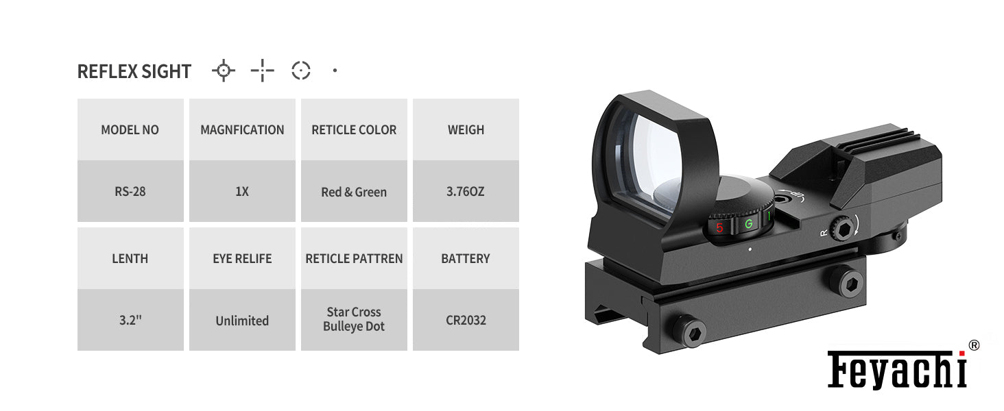 Feyachi RS-28 Reflex Sight - Adjustable Red/Green Reticle